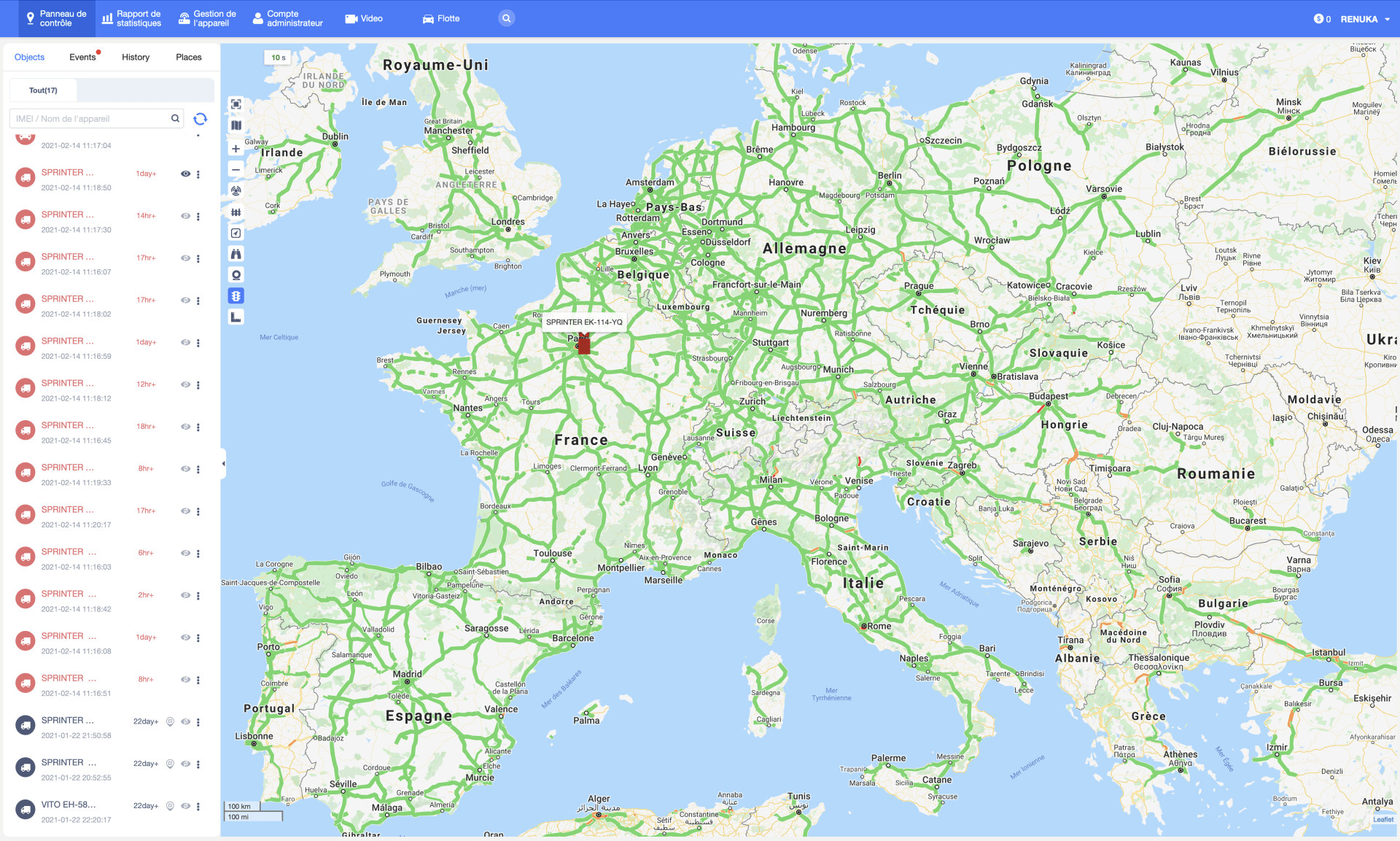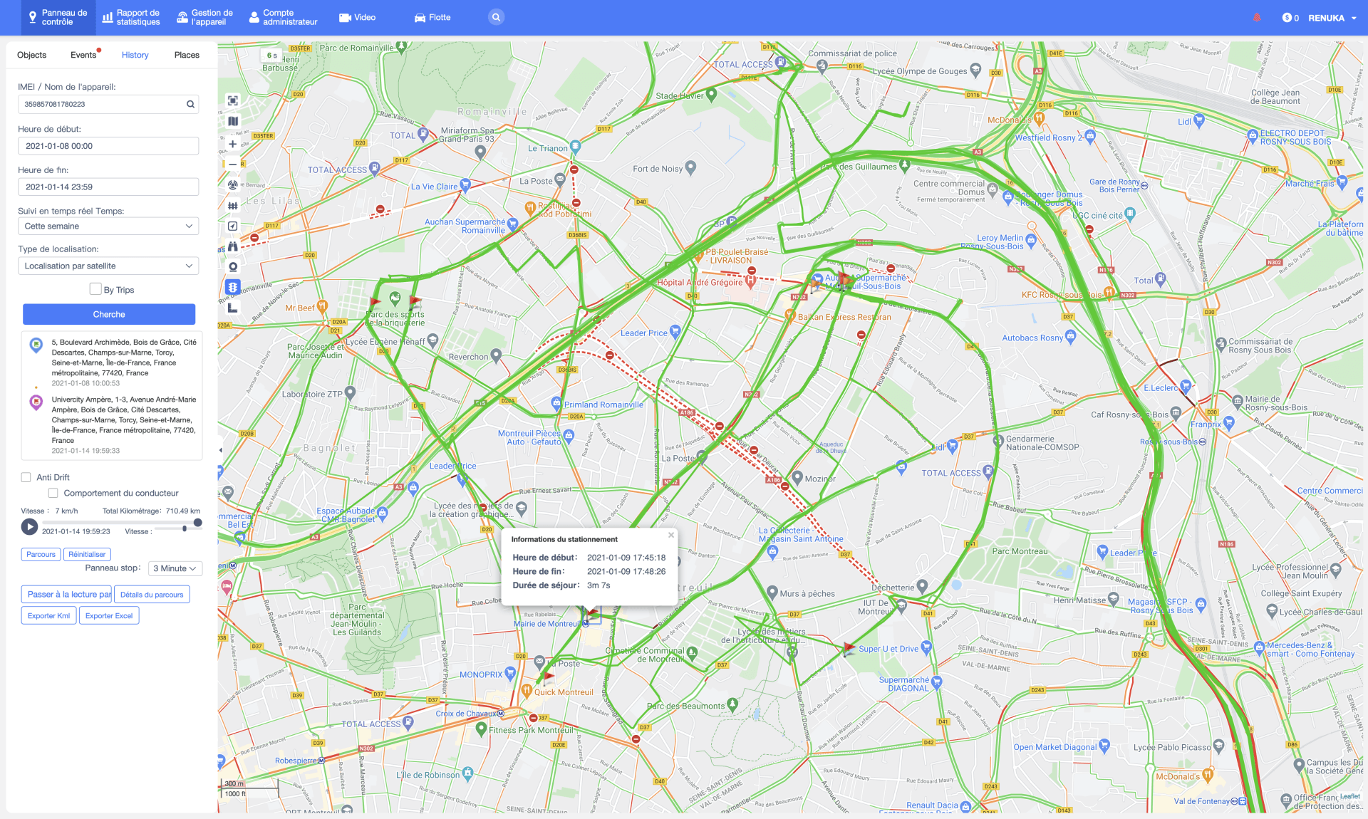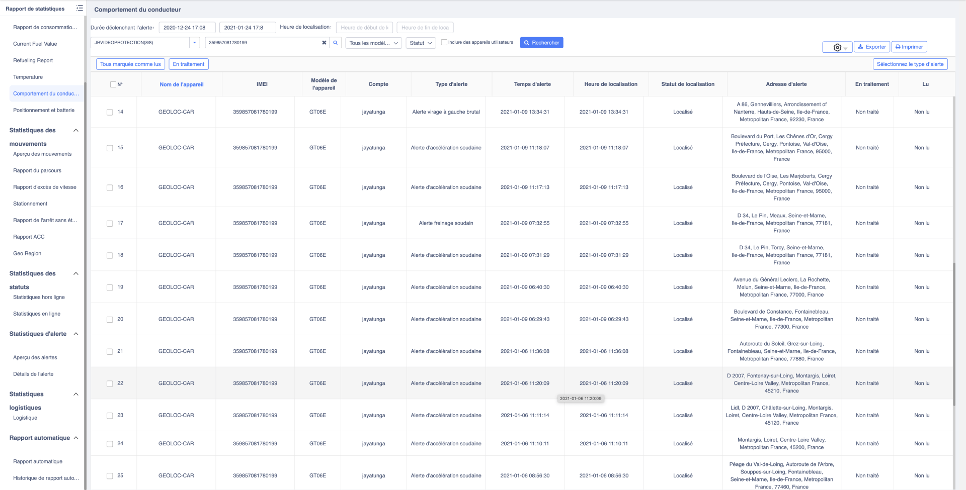 Vous pouvez paramétrer une vitesse maximale. En cas de dépassement de la vitesse prédéfinie, vous êtes immédiatement prévenu par un push sur l'application. Une extraction de ces alertes est possible sur Excel.
