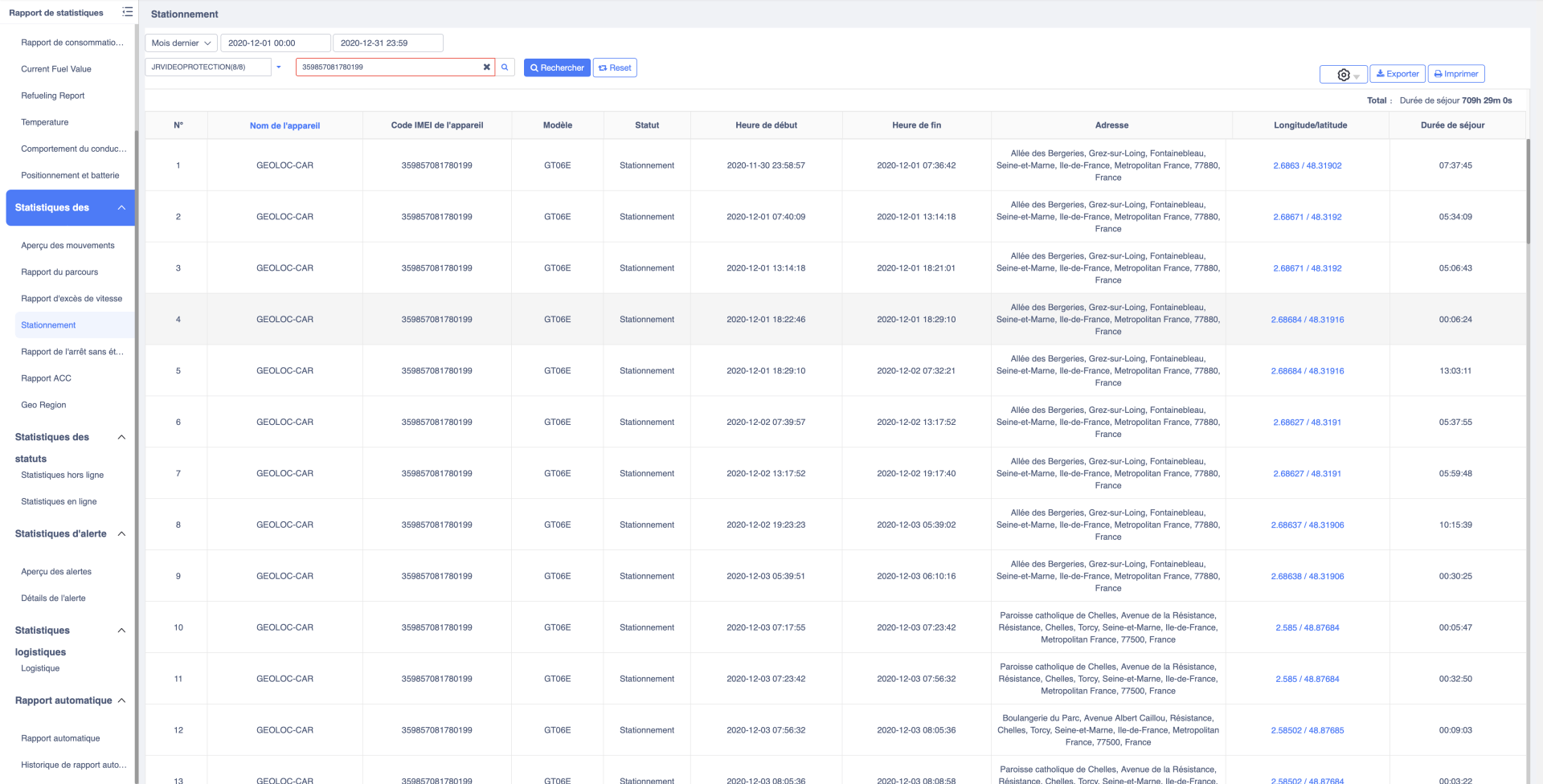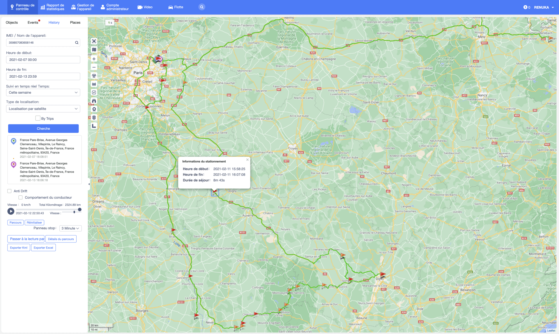 Vous pouvez paramétrer une vitesse maximale. En cas de dépassement de la vitesse prédéfinie, vous êtes immédiatement prévenu par un push sur l'application. Une extraction de ces alertes est possible sur Excel.